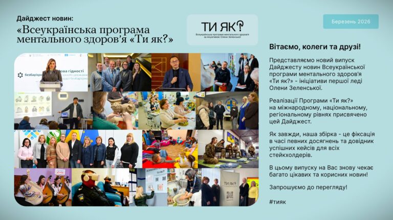 Формат створення Дайджесту оновлено: відтепер це не лише збірка новин та довідник кейсів, а й майданчик презентації найкращих надавачів послуг «Ти як?» рівня регіонів та громад. В цьому випуску про такі події та теми: Олена Зеленська взяла участь у презентації державного стандарту безбар’єрної мови Бюро ВООЗ в Україні World Health Organization Ukraine […]