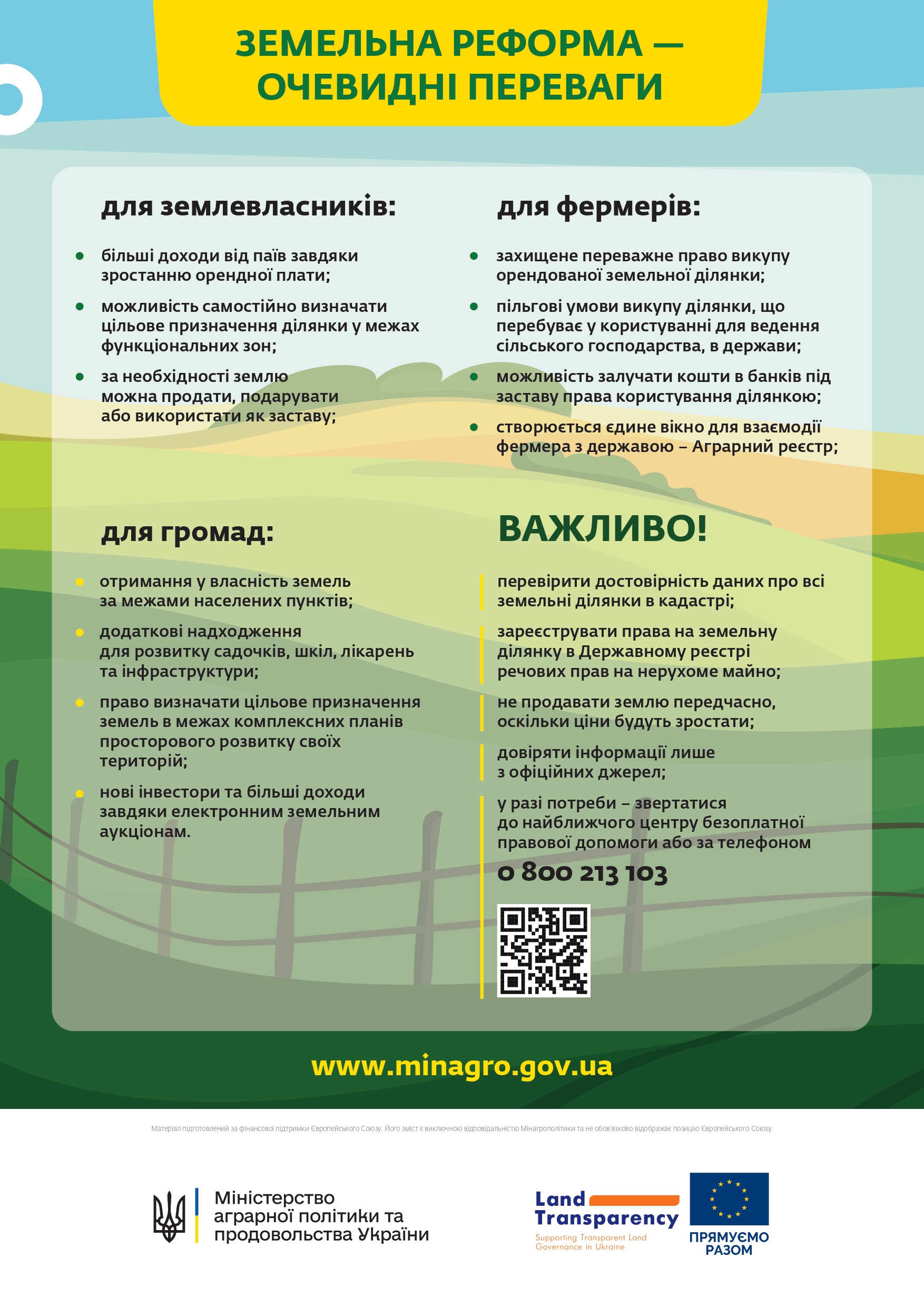 Міністр аграрної політики та продовольства Роман Лещенко зазначає, що ринок землі сьогодні повноцінно функціонує — він прозорий, дієвий і кожен може реалізувати своє право розпоряджатися землею: продати, передати в спадок, здавати в оренду чи самому господарювати на цій землі.
