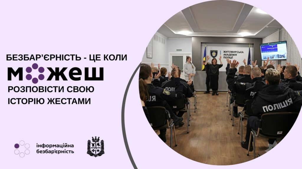 Безбар’єрність — це не лише про пандуси чи доступність сервісів. Передусім це про здатність суспільства чути одне одного в найширшому сенсі слова: поважати потреби, знаходити спільну мову та забезпечувати рівні можливості для кожного. Саме тому в Житомирській академії поліції тривають заняття з жестової мови, які допомагають майбутнім правоохоронцям ефективно взаємодіяти з людьми з порушеннями слуху.