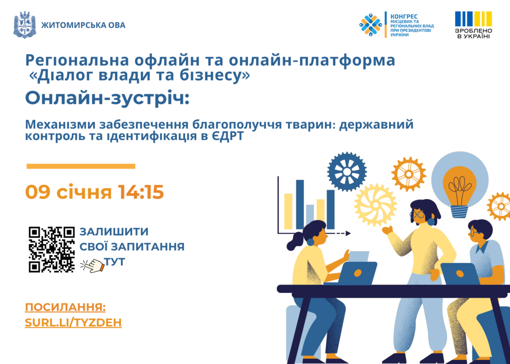 09 січня о 14:15 у рамках проєкту «Діалог влади та бізнесу» відбудеться чергове засідання на тему: «Механізми забезпечення благополуччя тварин: державний контроль та ідентифікація в ЄДРТ».
