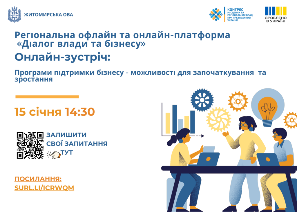 15 січня о 14:30 у рамках проєкту «Діалог влади та бізнесу» відбудеться чергове засідання на тему: «Програми підтримки бізнесу – можливості для започаткування та зростання».