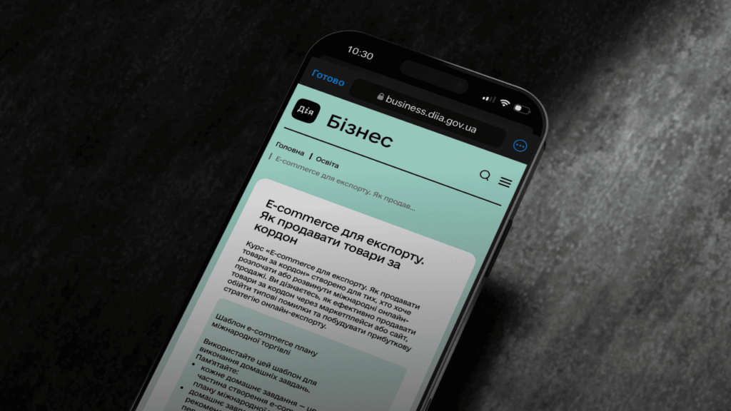 Довідково. Міністерство цифрової трансформації України спільно з державною установою «Офіс з розвитку підприємництва та експорту» реалізують національний проєкт «Дія.Бізнес». У його межах уже створено та функціонує комплекс безоплатних освітніх програм, консультацій і практичних матеріалів, спрямованих на підтримку українських підприємців у питаннях експорту та міжнародної електронної комерції.