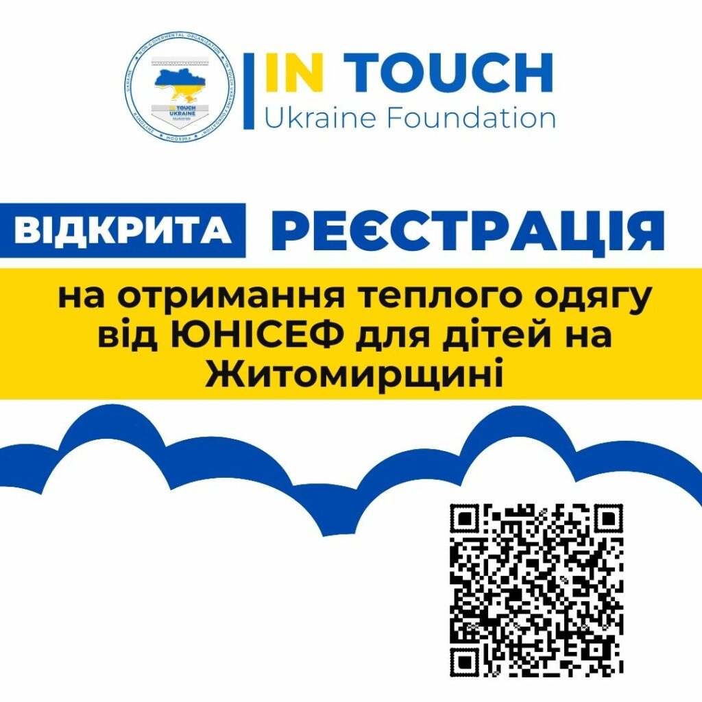 Як повідомляє In Touch Ukraine Foundation, відкрито реєстрацію на отримання теплого одягу від ЮНІСЕФ для дітей на Житомирщині.