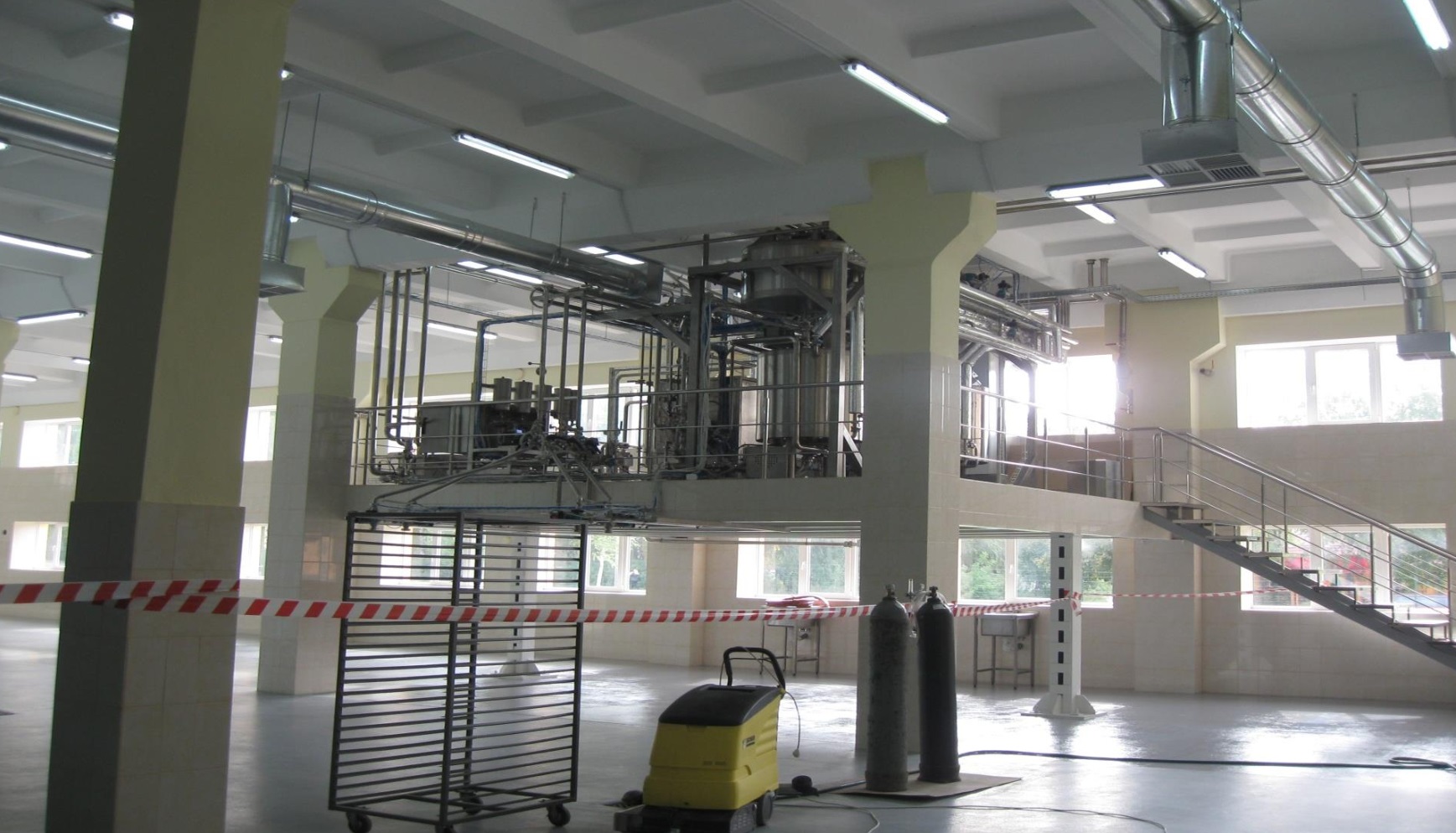 – виробничий корпус, який являв собою триповерхову висотну та одноповерхову частини. По корпусу були змонтовані фундаменти – 100%, каркас – 90%, стіни цегляні із навісних залізобетонних панелей виконані приблизно на 90%, перекриття першого та другого поверхів – 100%, третього – 70% та одноповерхової частини – 90%. Стан змонтованих конструкцій каркасу задовільний, частково зруйнована стяжка перекриття, у цегляних перегородках – тріщини;