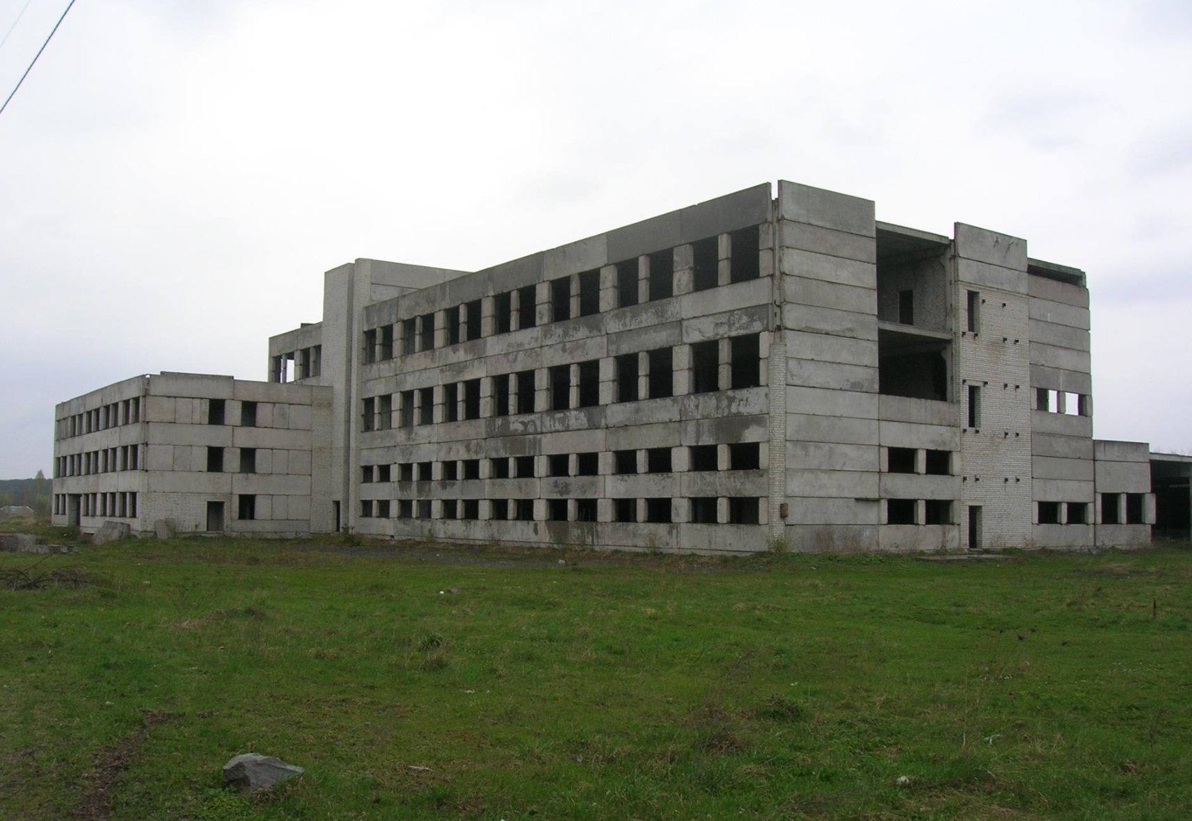 – виробничий корпус, який являв собою триповерхову висотну та одноповерхову частини. По корпусу були змонтовані фундаменти – 100%, каркас – 90%, стіни цегляні із навісних залізобетонних панелей виконані приблизно на 90%, перекриття першого та другого поверхів – 100%, третього – 70% та одноповерхової частини – 90%. Стан змонтованих конструкцій каркасу задовільний, частково зруйнована стяжка перекриття, у цегляних перегородках – тріщини;