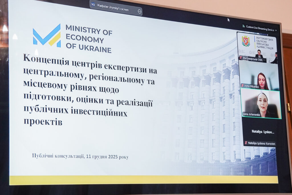 Сьогодні, 11 грудня, за ініціативи Міністерства економіки, довкілля та сільського господарства України відбулися публічні консультації, присвячені обговоренню проєкту Концепції центрів експертизи на центральному, регіональному та місцевому рівнях. Їхня діяльність має бути спрямована на професійну підготовку, оцінку та реалізацію публічних інвестиційних проєктів, що є ключовим елементом розвитку регіонів та держави загалом.