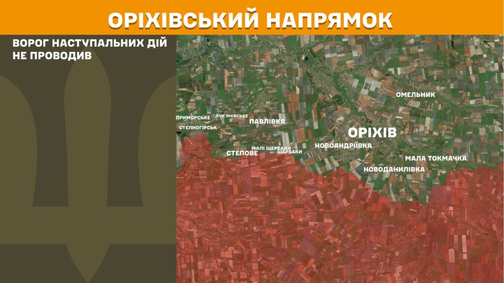На Оріхівському напрямку ворог наступальних дій не проводив.