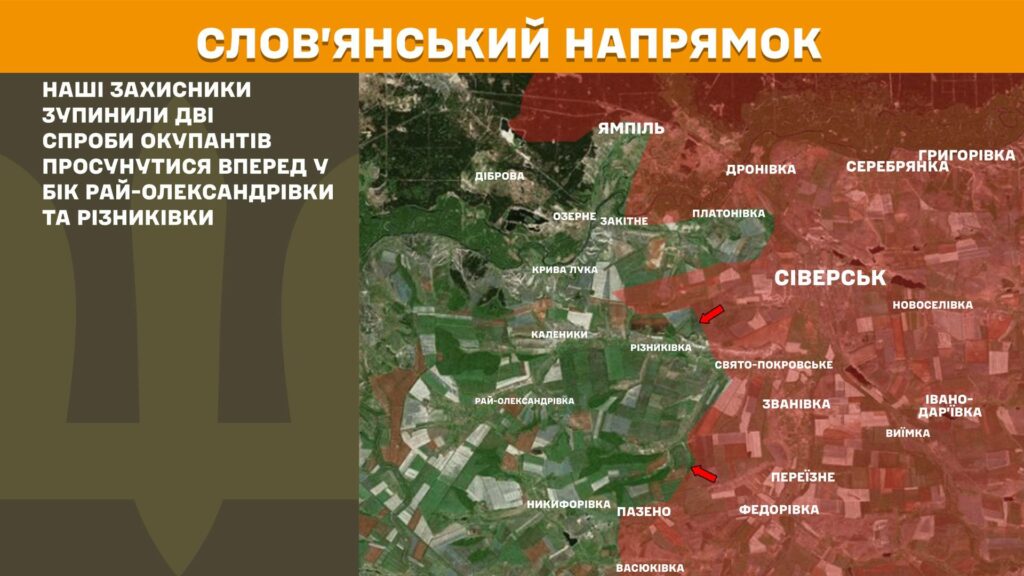 На Слов’янському напрямку протягом вчорашньої доби наші захисники зупинили дві спроби окупантів просунутися вперед у бік Рай-Олександрівки та Різниківки.