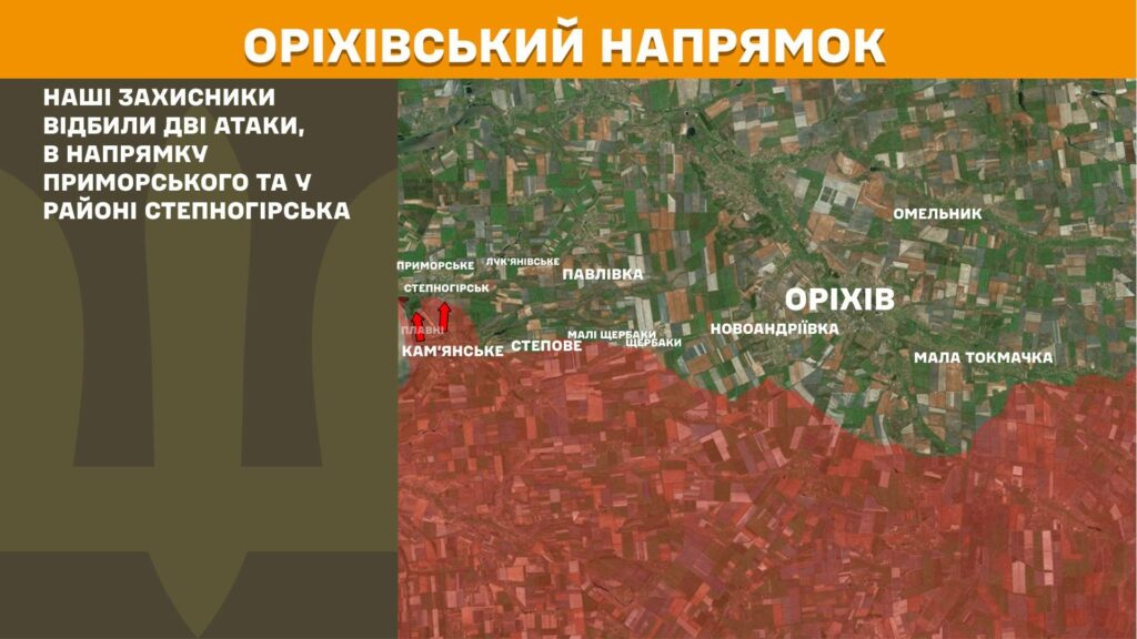 На Оріхівському напрямку наші захисники відбили дві атаки, в напрямку Приморського та у районі Степногірська.