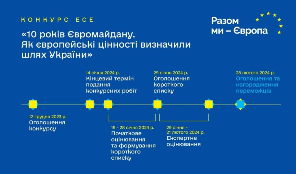 Представництво ЄС в Україні пропонує молоді поділитися своїми роздумами в есе на тему: «10 років Євромайдану: як європейські цінності визначили шлях України»