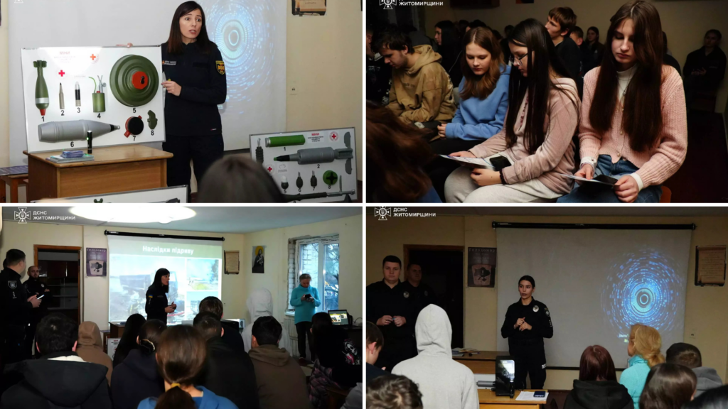 За інформацією ГУ ДСНС України у Житомирській області, фахівці ДСНС спільно з поліцейськими провели для студентів Житомирського технологічного фахового коледжу інформаційних захід з мінної безпеки та протидії домашньому насильству.