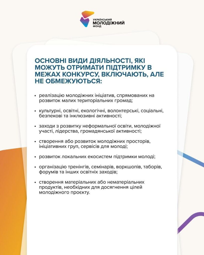Освітні, культурні, екологічні, волонтерські, соціальні, інклюзивні та безпекові ініціативи – підтримується все, що робить громаду сильнішою, активнішою та стійкішою.