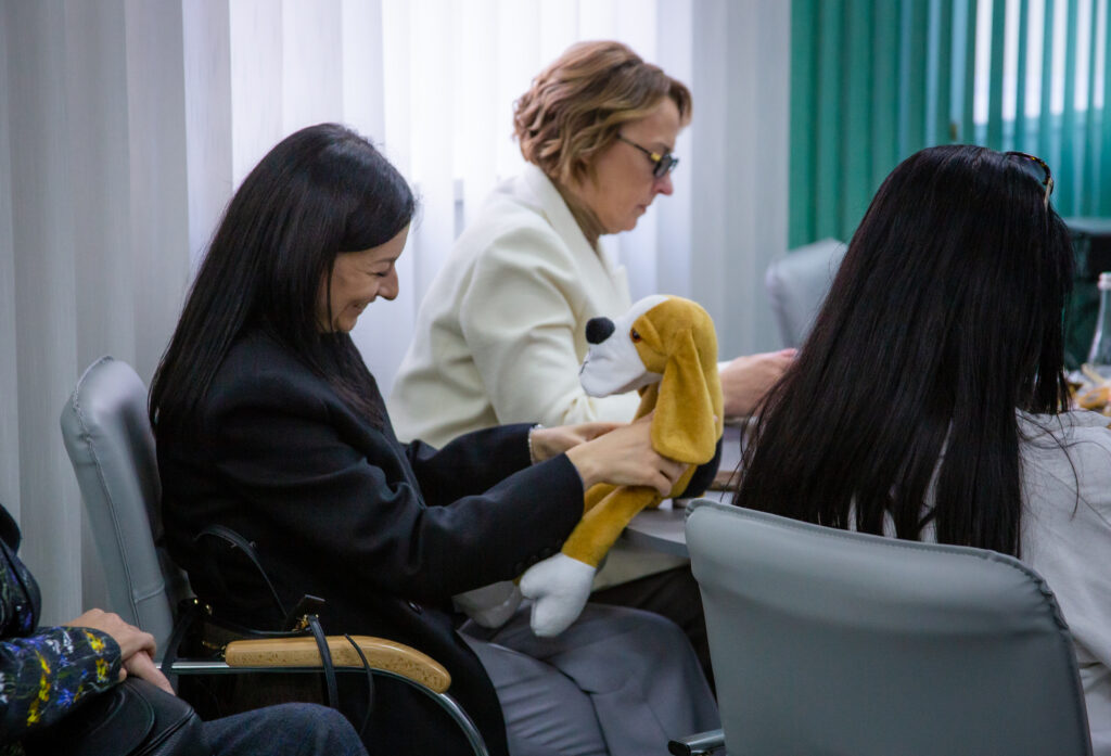 Далі делегація відвідала Центр ментального здоров’я на базі Житомирського обласного інституту післядипломної педагогічної освіти. Тут обговорювали інтеграцію програми «Ти як?» в освітнє середовище та нові методи терапії. Особливу увагу приділили інноваційній методиці «Хібукі-терапії» – коли дитина через обійми собаки-іграшки легше висловлює свої емоції та долає психологічні бар’єри.