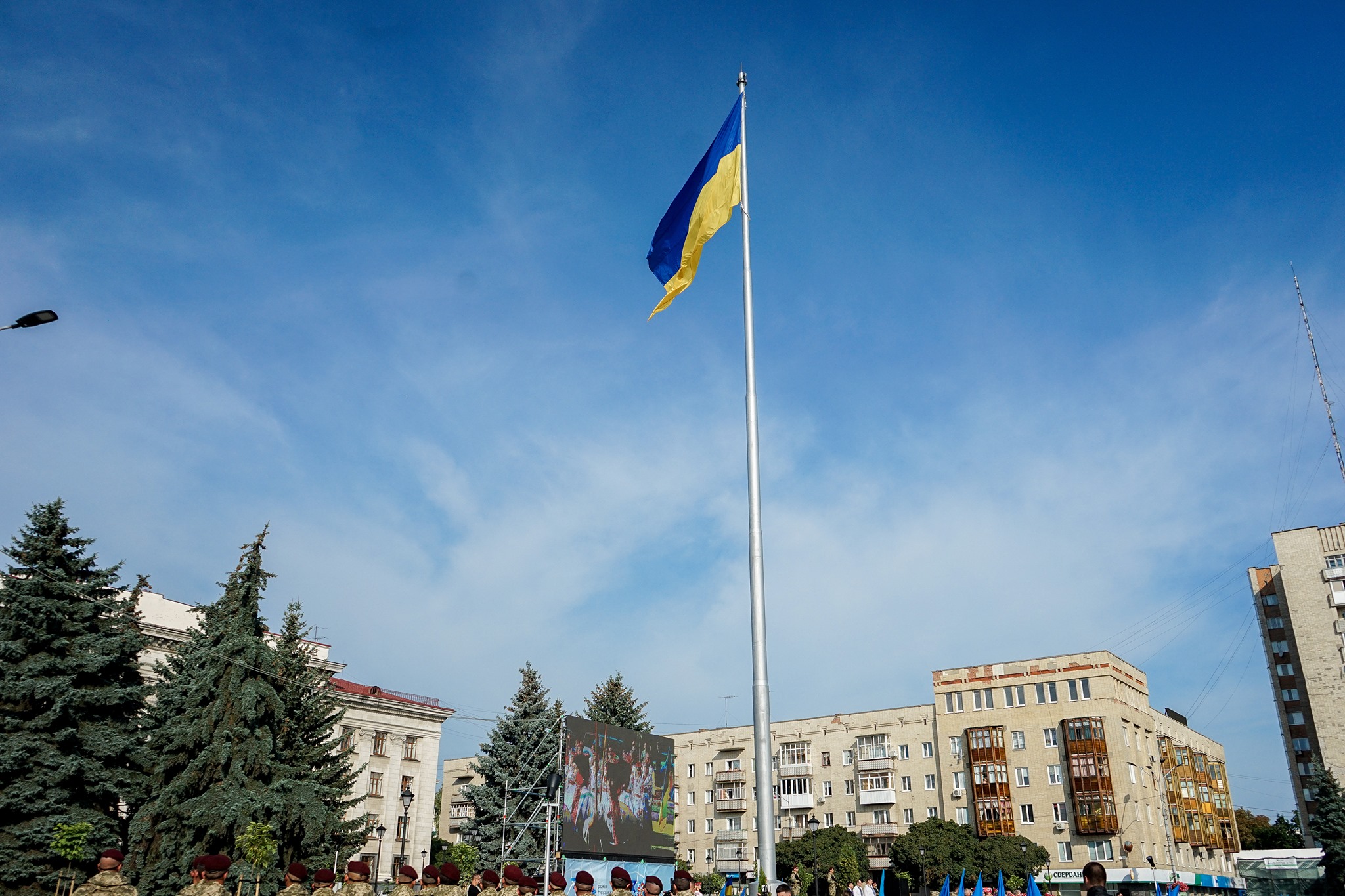 Так, під час всеукраїнської церемонії урочистого підняття Державного Прапора України на 50-метровому флагштоку, зведеному в рамках програми Президента «Велике будівництво», під Гімн України був піднятий жовто-блакитний стяг розміром 14 на 8 метрів.