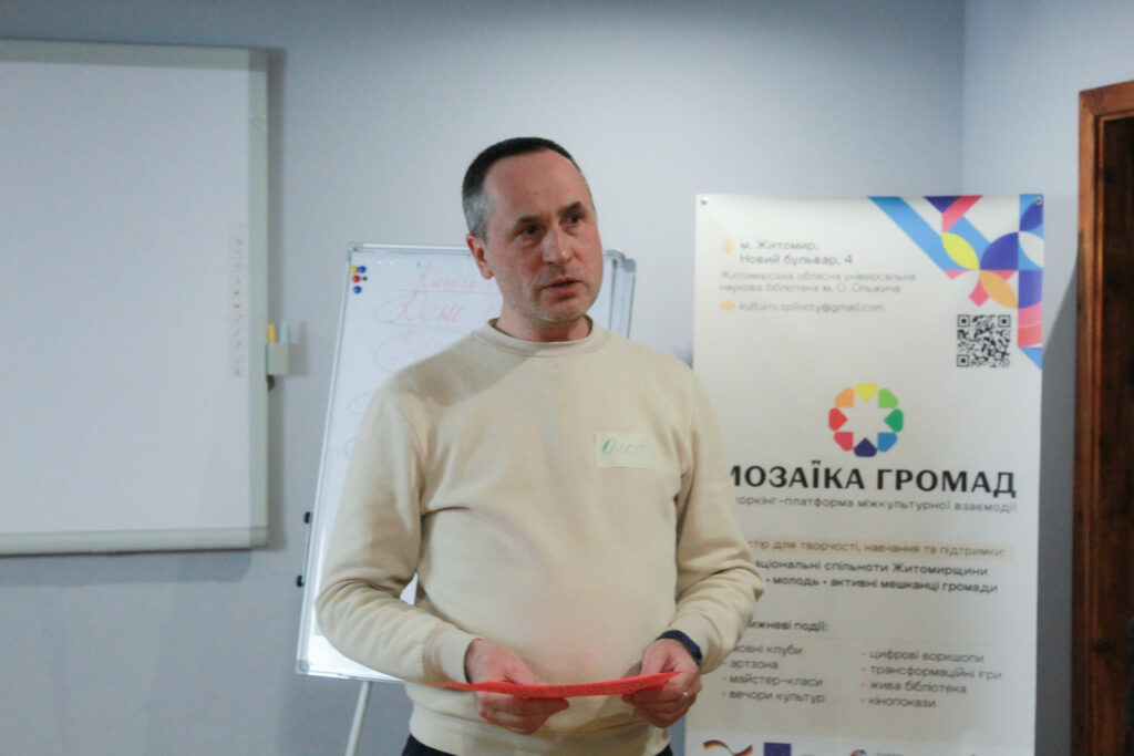 У Житомирі відбулася перша зустріч спільноти в межах платформи взаємодії «Мозаїка громад» — ініціативи, що об’єднує національні спільноти, внутрішньо переміщених осіб та партнерські організації задля розвитку відкритого діалогу й соціальної згуртованості в регіоні.