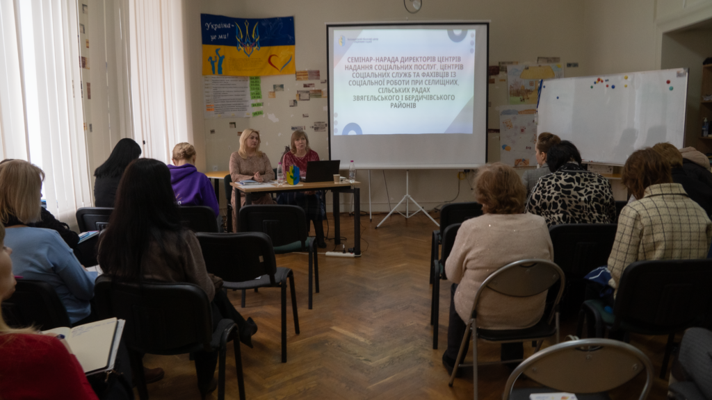 Сьогодні, 18 березня, у Житомирському обласному центрі соціальних служб відбувся черговий навчальний семінар для керівників центрів надання соціальних послуг та центрів соціальних служб міських, селищних і сільських рад. Захід був присвячений питанням організації та здійснення соціальної роботи з сім’ями й особами вразливих категорій, а також тими, хто перебуває у складних життєвих обставинах.