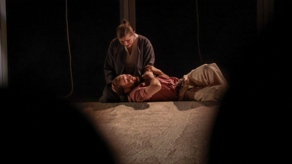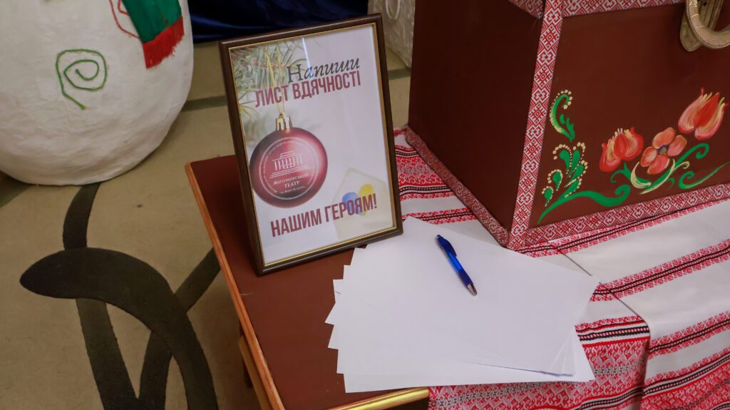 Також у фоє театру для глядачів було організовано тематичне перформативне дійство. Експозиція включає портрети загиблих Героїв та їхніх матерів із різних громад і регіонів Житомирщини, особисті речі, військовий одяг та елементи екіпірування бійців, які віддали життя за Україну. Під живий акомпанемент рояля простір експозиції перетворюється на простір тиші, пам’яті та невимовного болю. Окремим емоційним акцентом є символічна інсталяція «Мати»: жінка, що мовчки вишиває чоловічу сорочку як уособлення любові, втрати й пам’яті.
