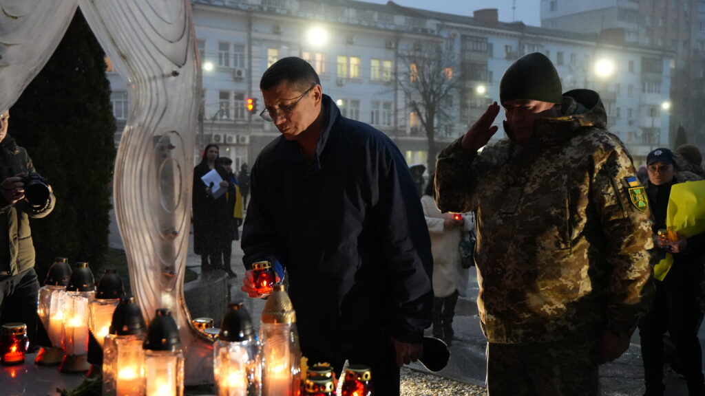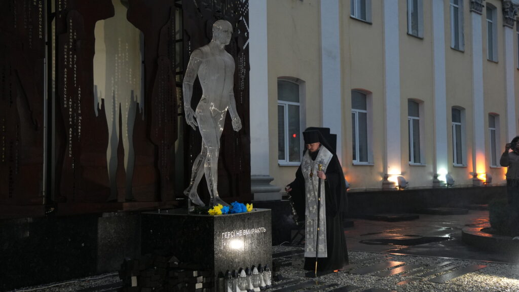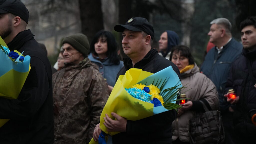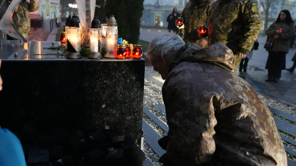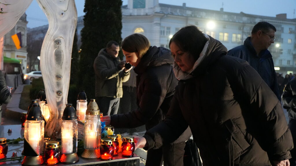 Усі присутні виконали Державний Гімн України та вшанували пам’ять Героїв Небесної Сотні, запаливши лампадки біля пам’ятного знаку.