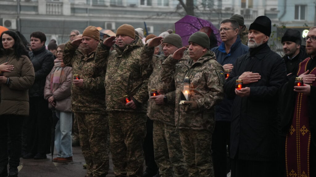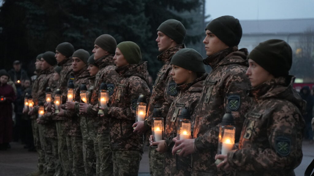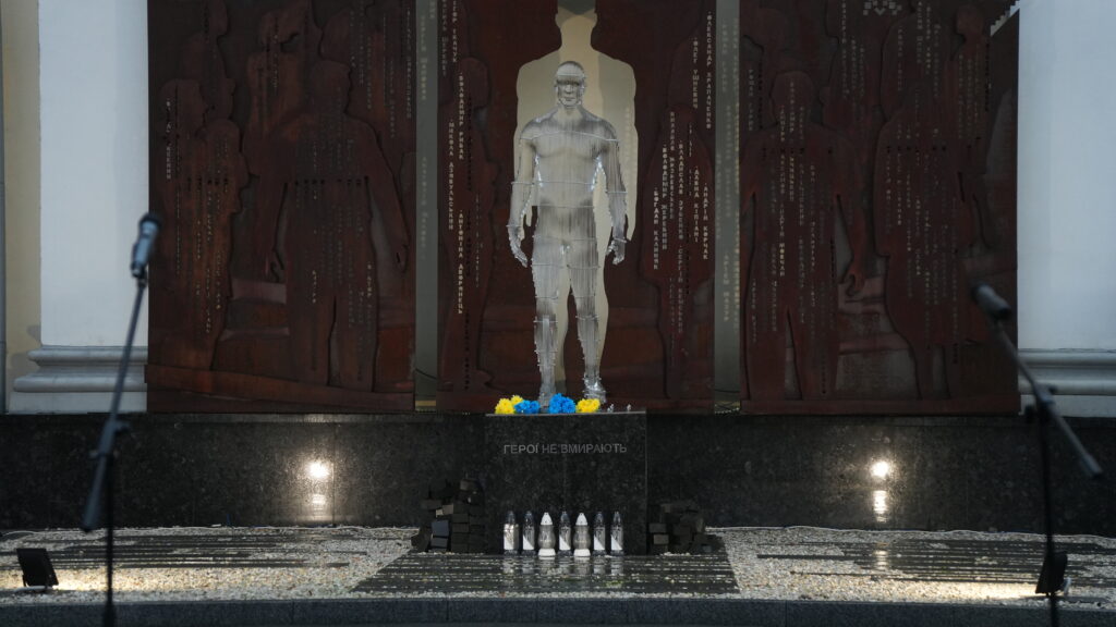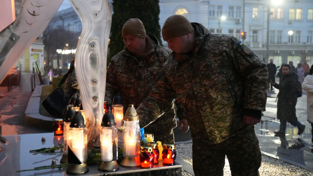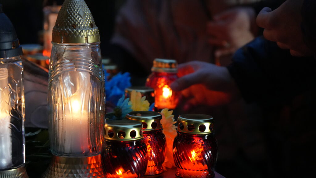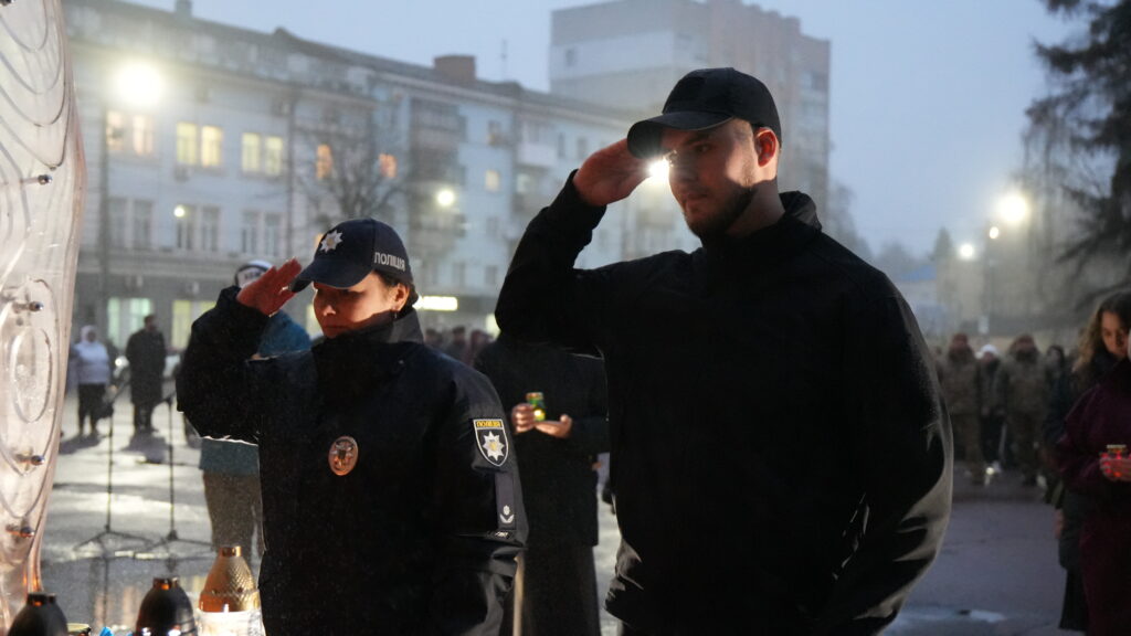 Усі присутні виконали Державний Гімн України та вшанували пам’ять Героїв Небесної Сотні, запаливши лампадки біля пам’ятного знаку.