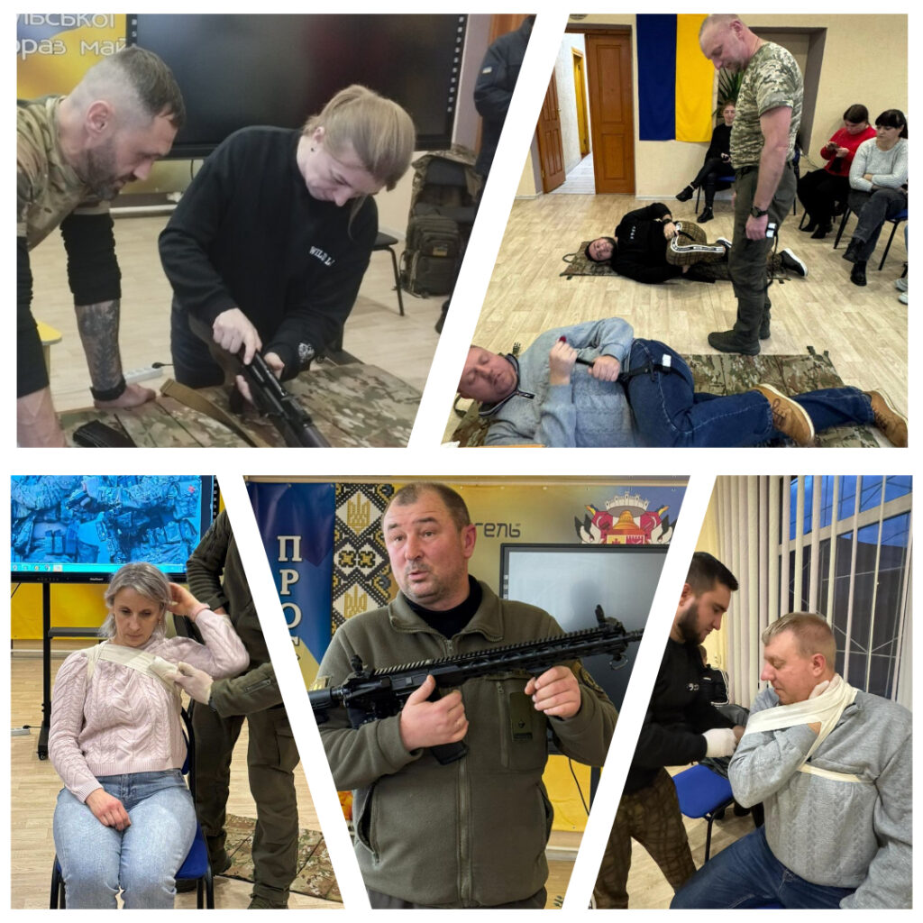 В перший день занять були лекції і практичні тренування. Досвідчені інструктори Центру допомогли учасникам вивчити зброю і основи домедичної підготовки.