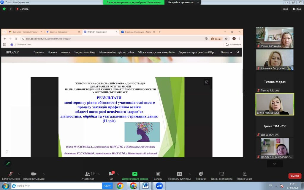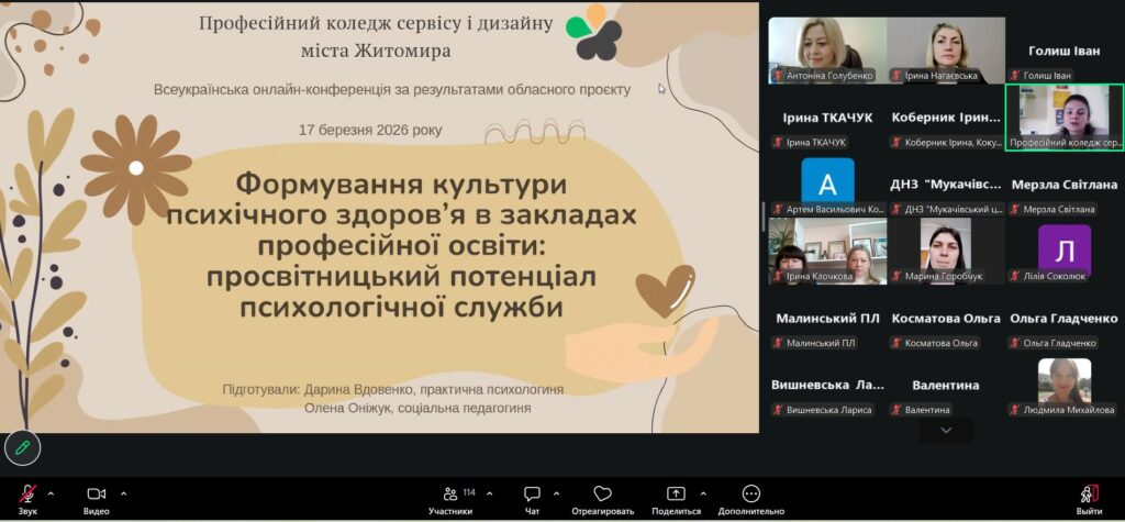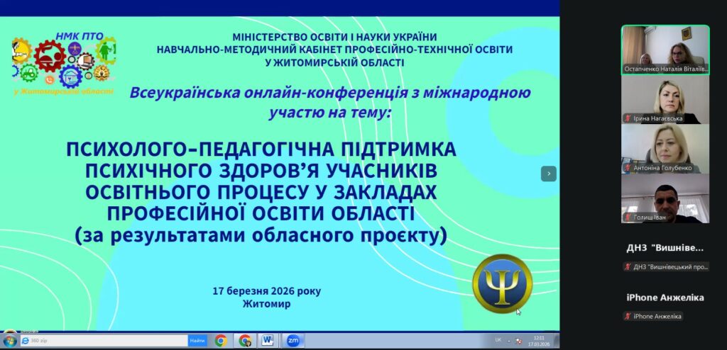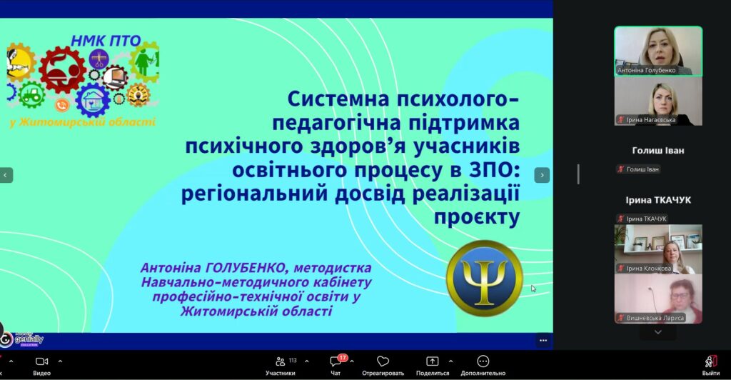 У Навчально-методичному кабінеті професійно-технічної освіти відбулася Всеукраїнська онлайн-конференція з міжнародною участю на тему: «Психолого-педагогічна підтримка психічного здоров’я учасників освітнього процесу у закладах професійної освіти області».