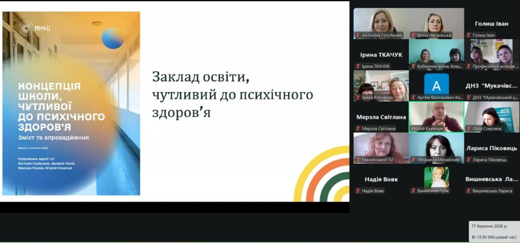 Окремо презентовано сайт проєкту — єдиний цифровий простір, що об’єднує методичні матеріали, рекомендації та практичні інструменти для впровадження підходів, чутливих до психічного здоров’я, у закладах професійної освіти.