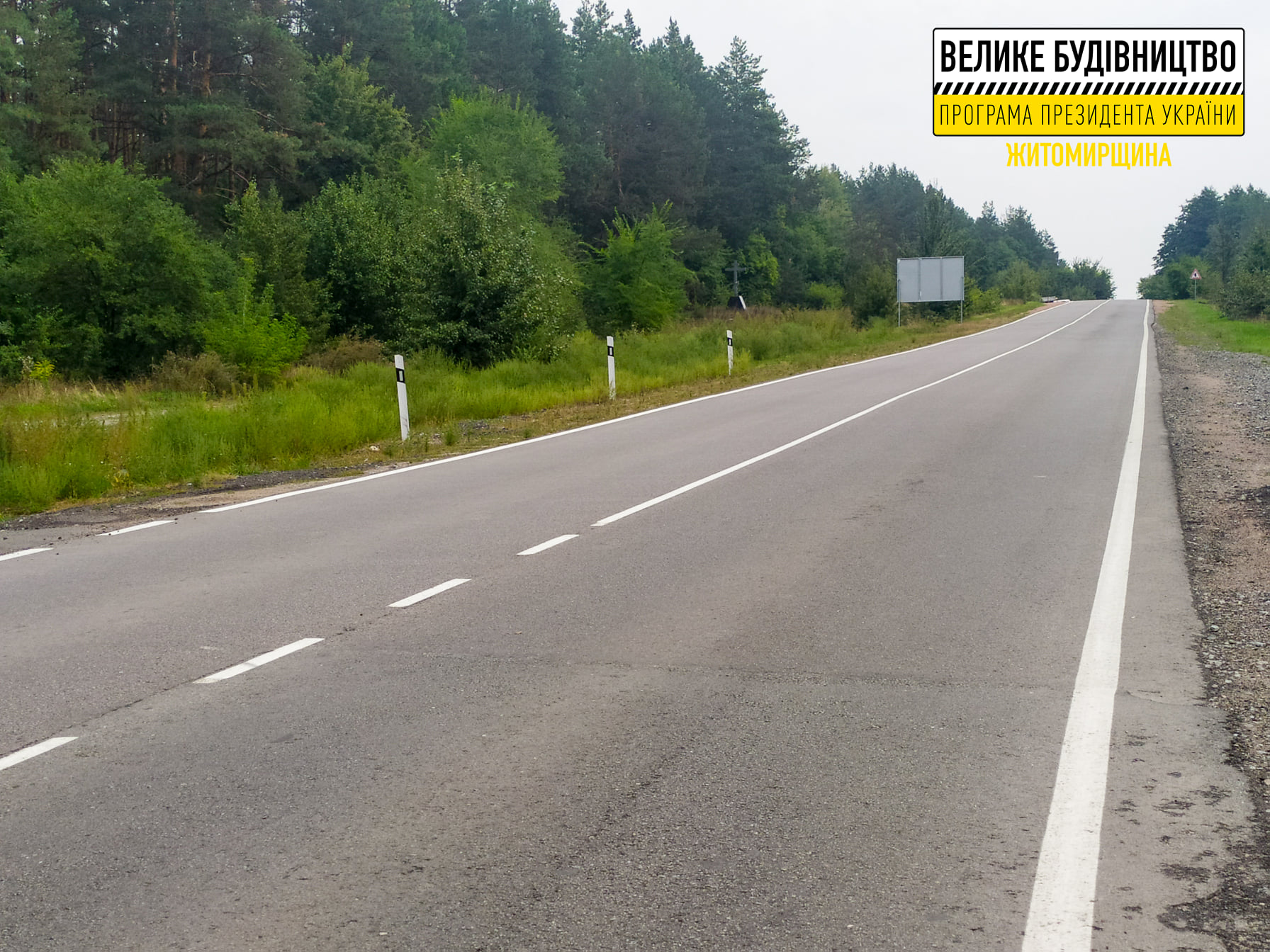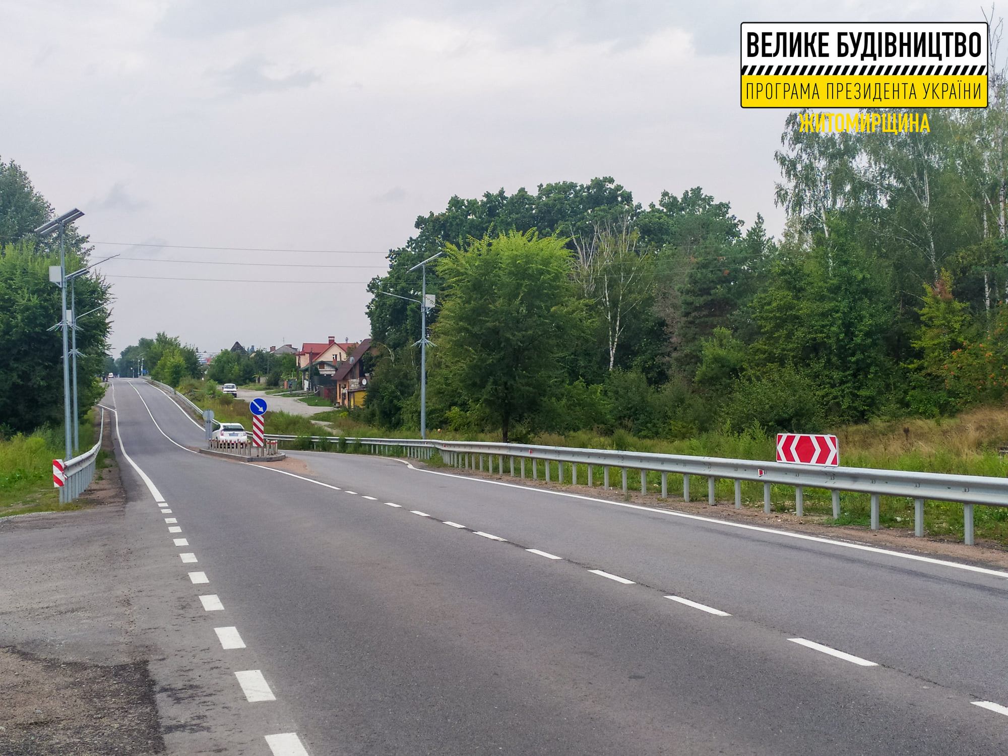 Ще один об’єкт президентської програми «Велике будівництво», який офіційно відкрили сьогодні, розташований з іншого боку траси М-06 та має таке саме стратегічне значення для забезпечення альтернативного проїзду у напряму Києва. Йдеться про ділянку автошляху Коростишів – Кошарища у Коростишівській громаді.