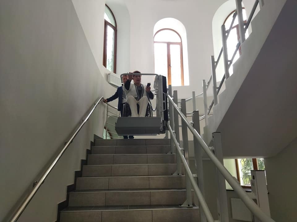Приміщення зручне у використанні людьми, які пересуваються на інвалідних візках. На другий поверх можна потрапити скориставшись гвинтовим підйомником. Зручна туалетна кімната і безпороговий простір надають можливість вільно пересуватися будівлею.