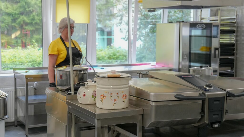 Під час ремонту було повністю оновлено шість приміщень харчоблока та обідню залу. Закуплено сучасне обладнання: пароконвектомат, електроплити, посудомийні машини, овочерізки, а також холодильне та морозильне обладнання. Крім того, встановили нову вентиляційну систему з рекуперацією повітря. З першого вересня 2025 року учні ліцею вже отримують гаряче харчування в новому, сучасному приміщенні.