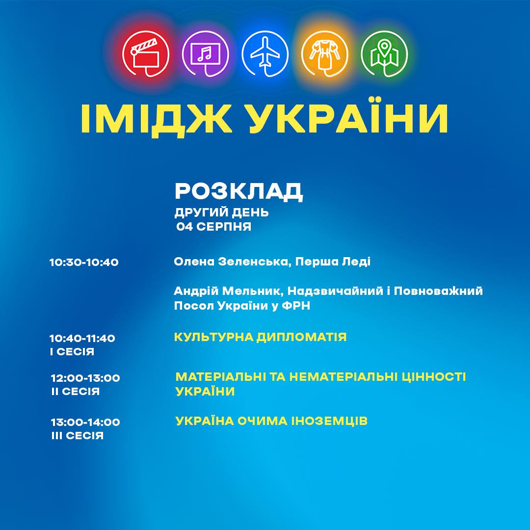 У понеділок, 02 серпня, об 11:00 у межах форуму «Україна 30. Імідж України», який проходитиме 02-04 серпня, відбудеться презентація концепції святкування Дня Незалежності України, у якій візьмуть участь Президент Володимир Зеленський і перша леді Олена Зеленська.