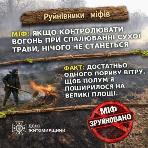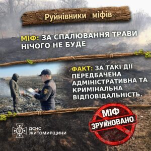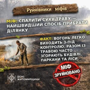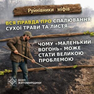 Вся правда про спалювання сухої трави та листя, – ГУ ДСНС Житомирщини