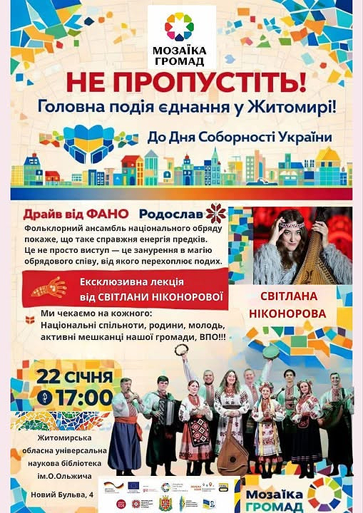Запрошуємо до головної події єднання у Житомирі до Дня Соборності України в просторі «Мозаїка громад»