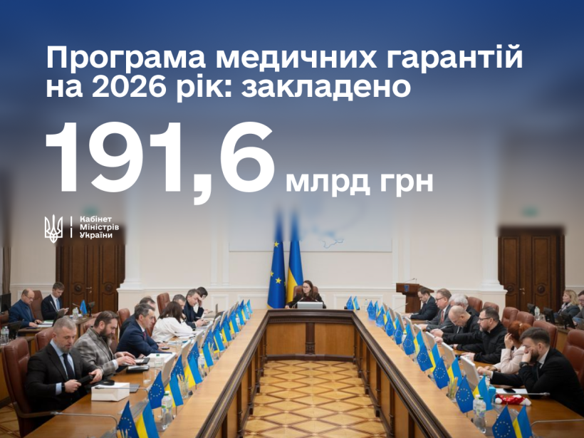 Уряд затвердив механізм впровадження Програми медичних гарантій (ПМГ) на 2026 рік. Для реалізації ПМГ у державному бюджеті на наступний рік передбачили понад 191,6 млрд грн.
