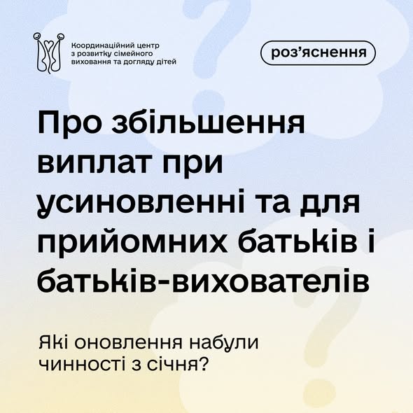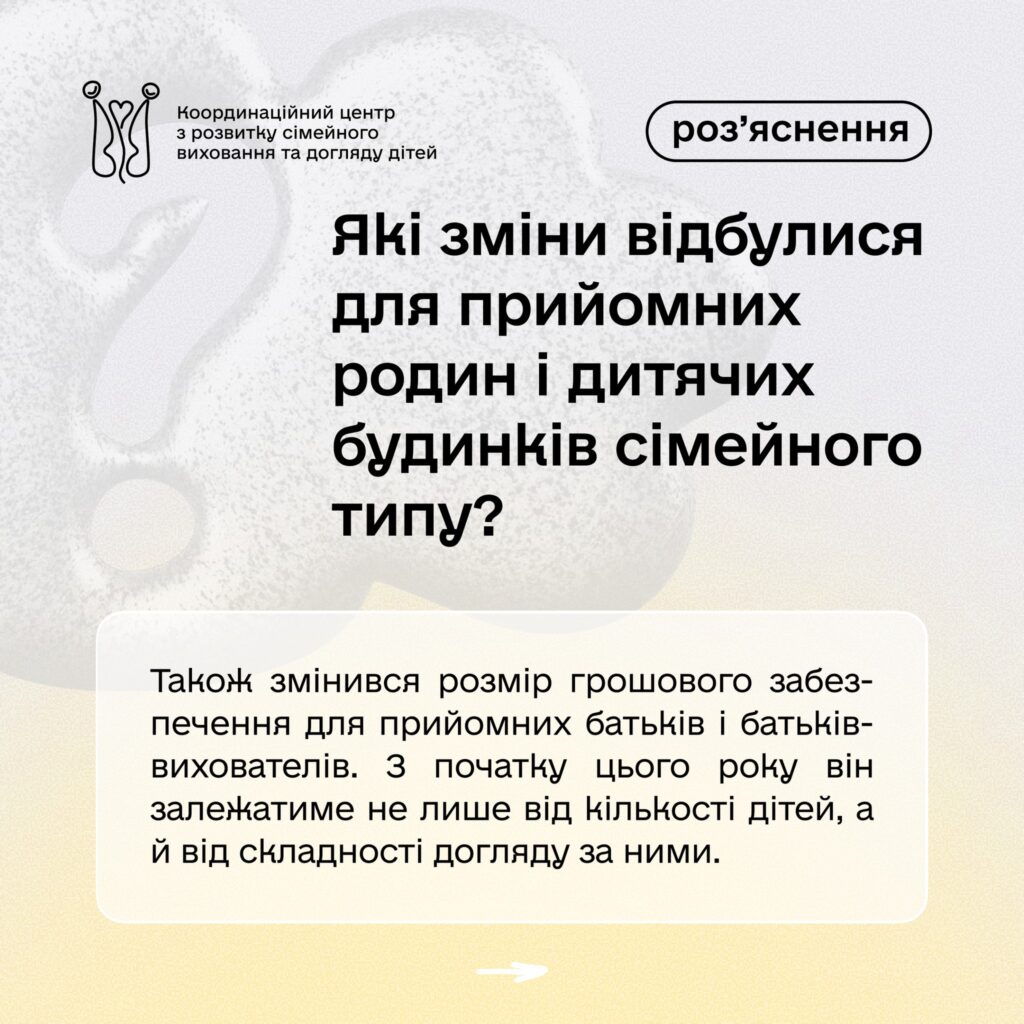 З 01 січня 2026 року держава перейшла на нову систему розрахунку грошового забезпечення для прийомних батьків і батьків-вихователів. Грошове забезпечення у підвищеному розмірі виплачуватиметься сімʼї, незалежно від того, коли вона була утворена.