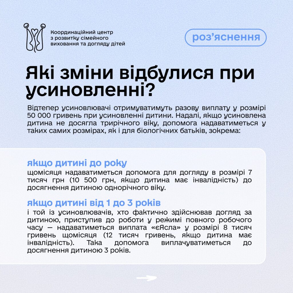 Збільшення виплат при усиновленні та для прийомних батьків і батьків вихователів. Інфографіка