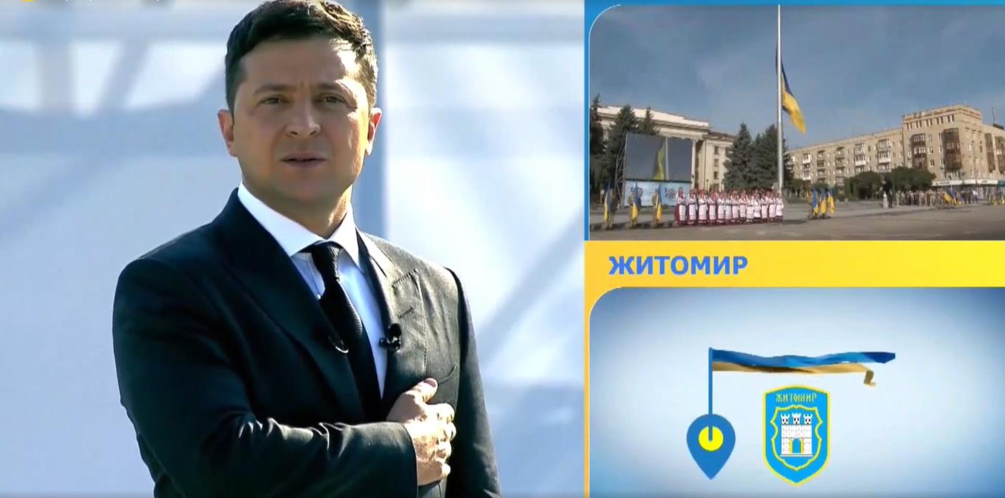 Урочисту церемонію підняття Державного Прапора України відкрив Президент Володимир Зеленський на Черкащині у Географічному центрі України. Одночасно державні прапори були підняті в усіх регіонах України.