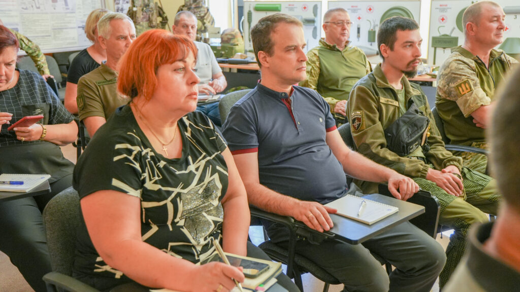 У Житомирі продовжується активна підготовка державних службовців до дій в умовах національного спротиву. Навчання організоване за участі інспекторів Центру національного спротиву, які проводять лекції та практичні заняття на різну тематику — від першої медичної допомоги до мінної безпеки.