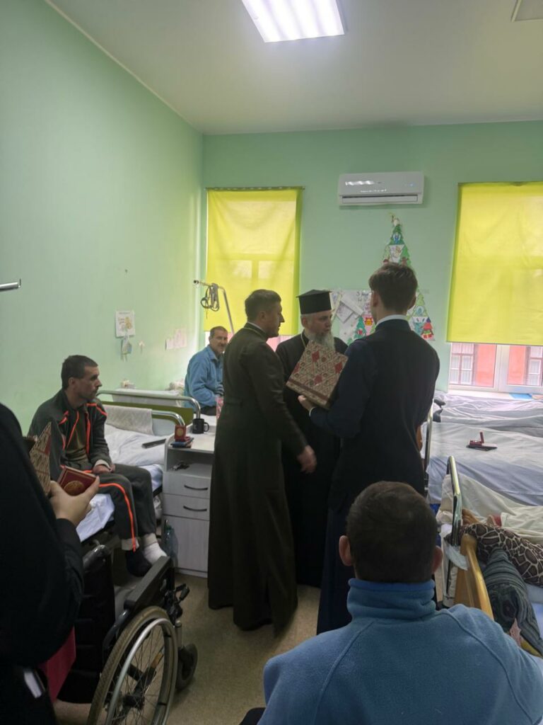 Особливу увагу Предстоятель приділив українським військовослужбовцям, які проходять лікування після поранень. Він відвідав поранених бійців у Житомирському військовому шпиталі, поспілкувався з ними, висловив слова підтримки та подяки за мужність і самопожертву в обороні України. Під час зустрічі Блаженнійший Митрополит благословив захисників та побажав їм якнайшвидшого одужання.